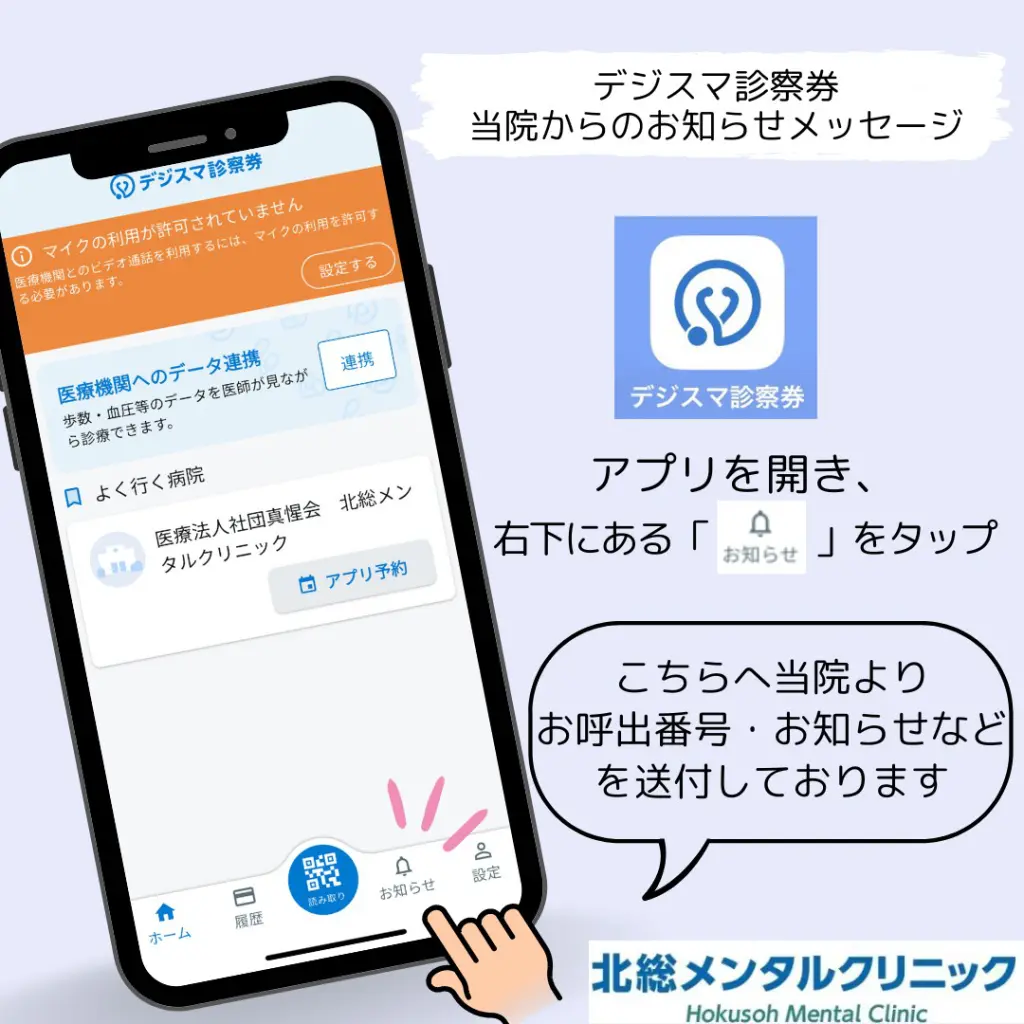 3,発行された番号は、デジスマ診察券の「お知らせ」で確認できます。