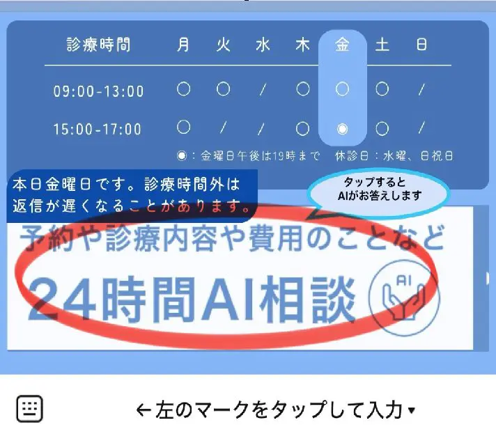 ※休診日のお問い合わせはLINEのみとなっております。