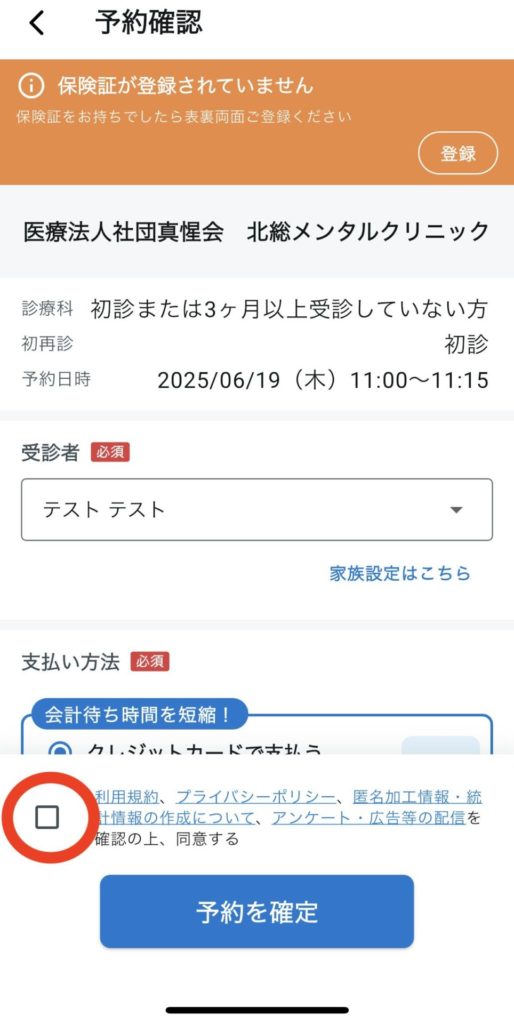 予約を確定をタップ